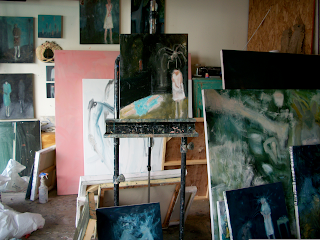 My other work (as a psychoanalyst) doesn't feel like a separate existence from my painting, but more like they are woven together somehow- I am an analyst who paints and a painter who does psychoanalysis. I feel each one enhances the other. But because of that work, I am in my office 3 days a week and in the studio the other time (although some days there is an overlap). Oh, and somehow, I also find time to be with my daughter and husband and family and friends.