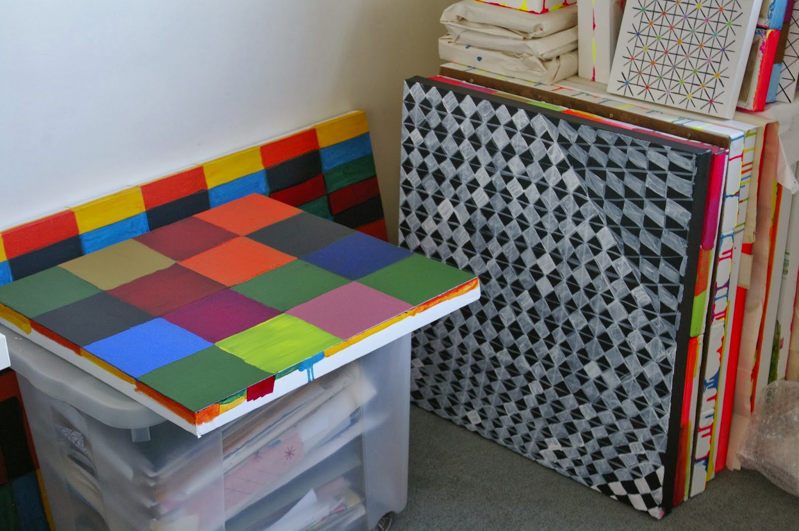 I’m working on a few things. I’m putting together a series of miniatures for a travelling show titled, ‘Wandering Museum’. I usually work fairly small but these measure just 7x5cm and are the smallest things I have ever worked on. At first it seemed like an impossible task but actually I soon became accustomed to the scale and I am enjoying the challenge. I am also working on a series of small canvases given to me by a friend who is opening a gallery and wanted me to do something for her. I am working on eight, 25x30cm canvases. They are still in early stages and I am just laying down colours and making marks.